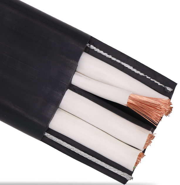 應(yīng)考慮在電纜中增加承力元件,承力元件一般為鍍鋅軟鋼絲繩或纖維繩如芳綸紗等